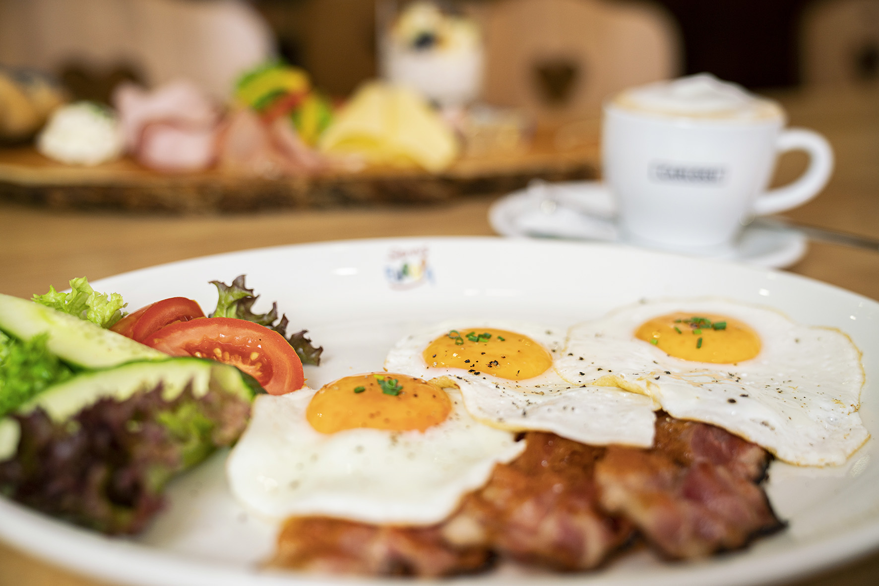Eine Variation an Frühstücksangeboten, frischen Bio-Eierspeisen, duftenden Kaffeespezialitäten, ofenfrischem Brot & Gebäck, frischen Früchten, Joghurts und noch vieles mehr erwarten Sie.